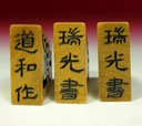 ちなみに「瑞光書」は、かつて大阪の深彫りで知られる駒師・駒権(「駒関連資料館・42竜司島黄楊柾目彫り駒・駒権作」▼別項参照)の書体の一つ。このような隷書体は珍しい。