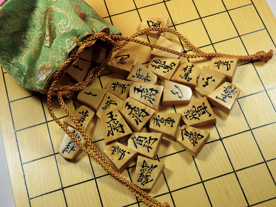 長録島黄楊根杢書き駒・ミニ盤駒セット |