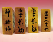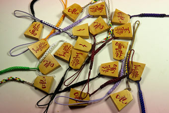 詳しくは、後日掲載する予定の「酔棋駒友将棋大会」ページにあらためて書くが、左に掲載した長録のミニ根付(表が黒・裏が赤、「玉将・金将」の裏は左馬)と、『将棋駒制作』3セットパンフレット(彫り駒編・盛り上げ編・酔棋流書き駒編)が、先の将棋大会と打ち上げに参加する方の参加賞にした。