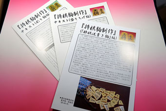 | 参加賞の『将棋駒制作』3セットパンフレット。 |