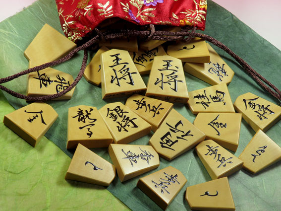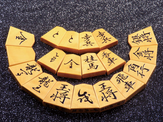 「王将と歩兵」のアップ。漆の感じがよくわかる。 |