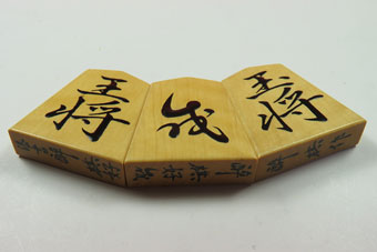 「王将と2枚の玉将」のアップ。1枚の「玉将」の裏には「花押」を入れた。 |