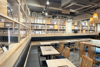 | 入り口から撮ったお店の全景。見事な壁面飾り だ。 |